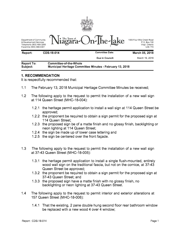 Duff Roman to Municipal Heritage Committee Feb 13 2018